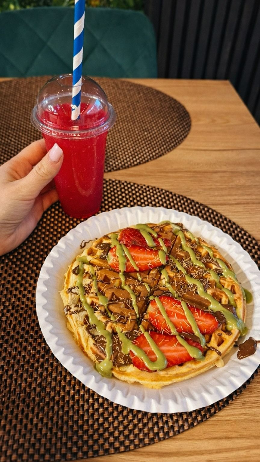 Na deser czekają bubble gofry – puszyste, słodkie i pełne dodatków, które zachwycą każdego łasucha. Całość możesz uzupełnić orzeźwiającymi drinkami, które idealnie pasują do każdego dania.